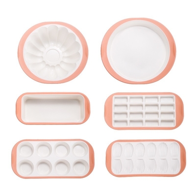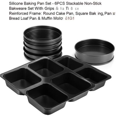 Bộ khuôn nướng silicone cấp chuyên nghiệp của chúng tôi bao gồm khuôn bánh tròn, khuôn nướng vuông, khuôn bánh mì và khuôn muffin - tất cả đều có tay cầm và khung gia cố bằng kim loại để có độ bền và dễ dàng sử dụng.