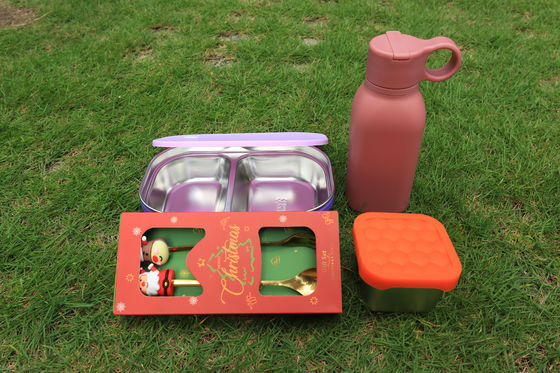 Premium Silicone & Stainless Steel Tableware Gift Set | Eco-Friendly Divided Lunch Box, Water Bottle & Cutlery - Perfect Christmas Gift